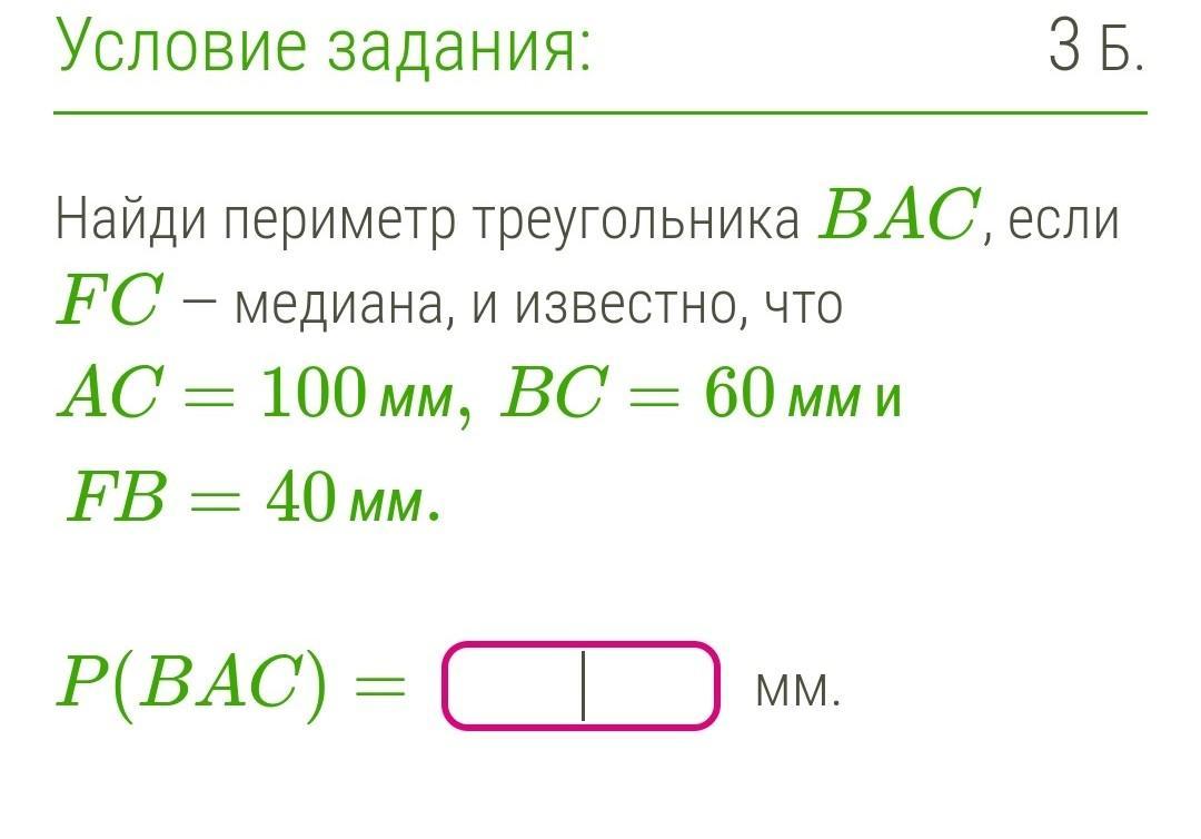 40*2 =80мм-сторона ВА (так как медиана делит сторону пополам)