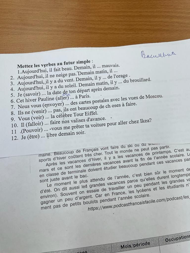 поставьте слова в futur simple !! ( верхняя бумажка предложения под номерами)