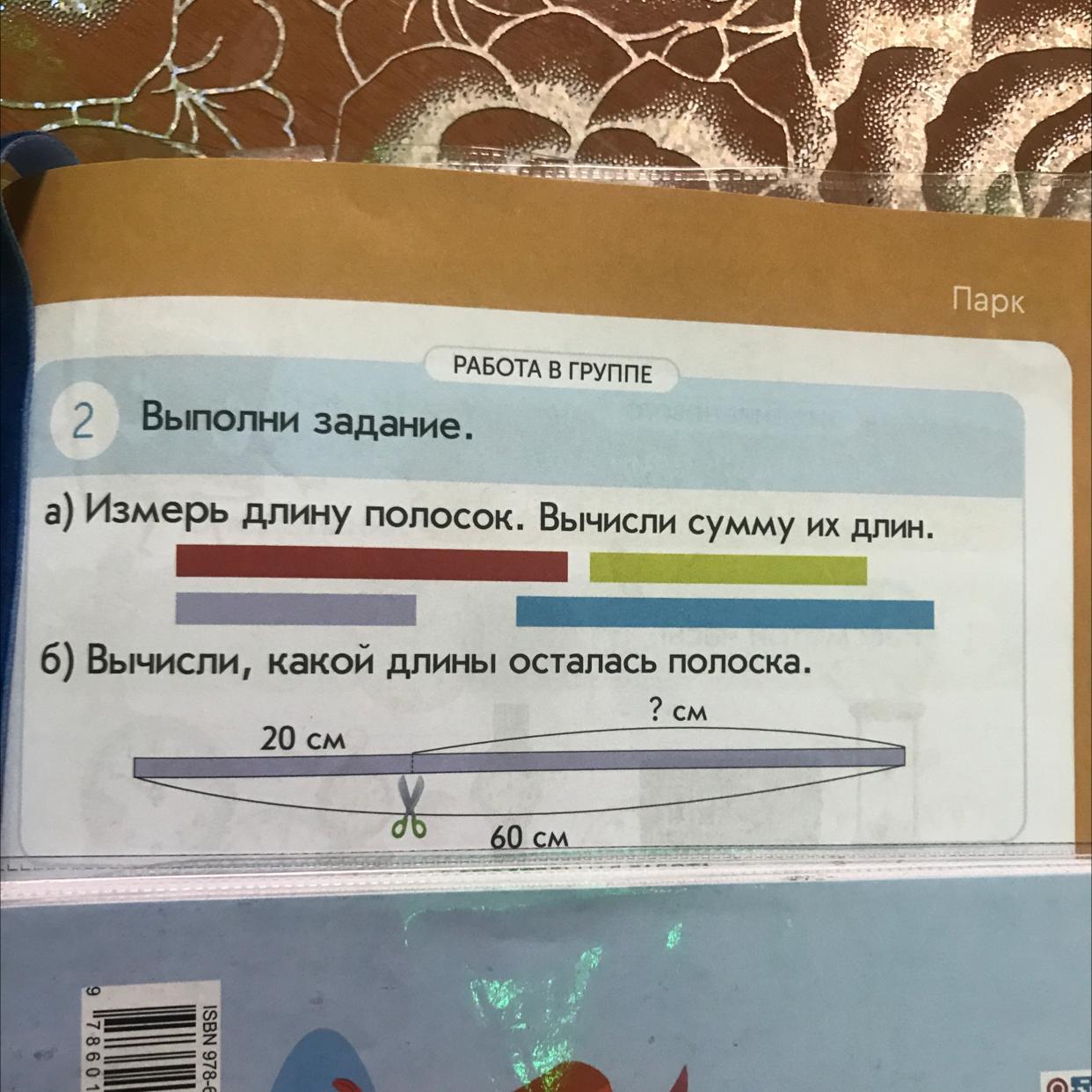 а) Измерь длину полосок. Вычисли сумму их длин.
