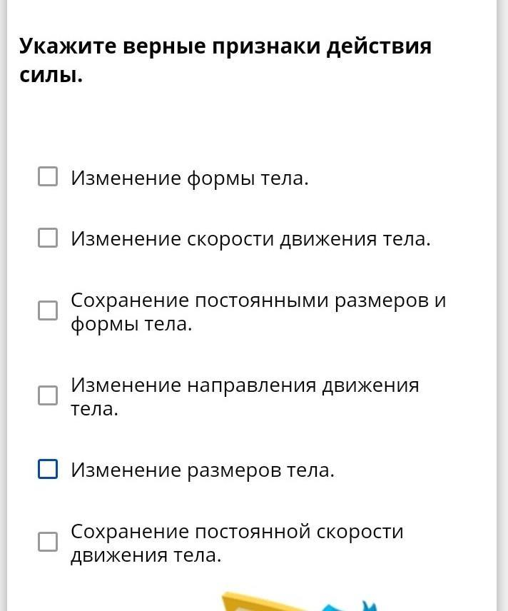 укажите верные признаки действия силы