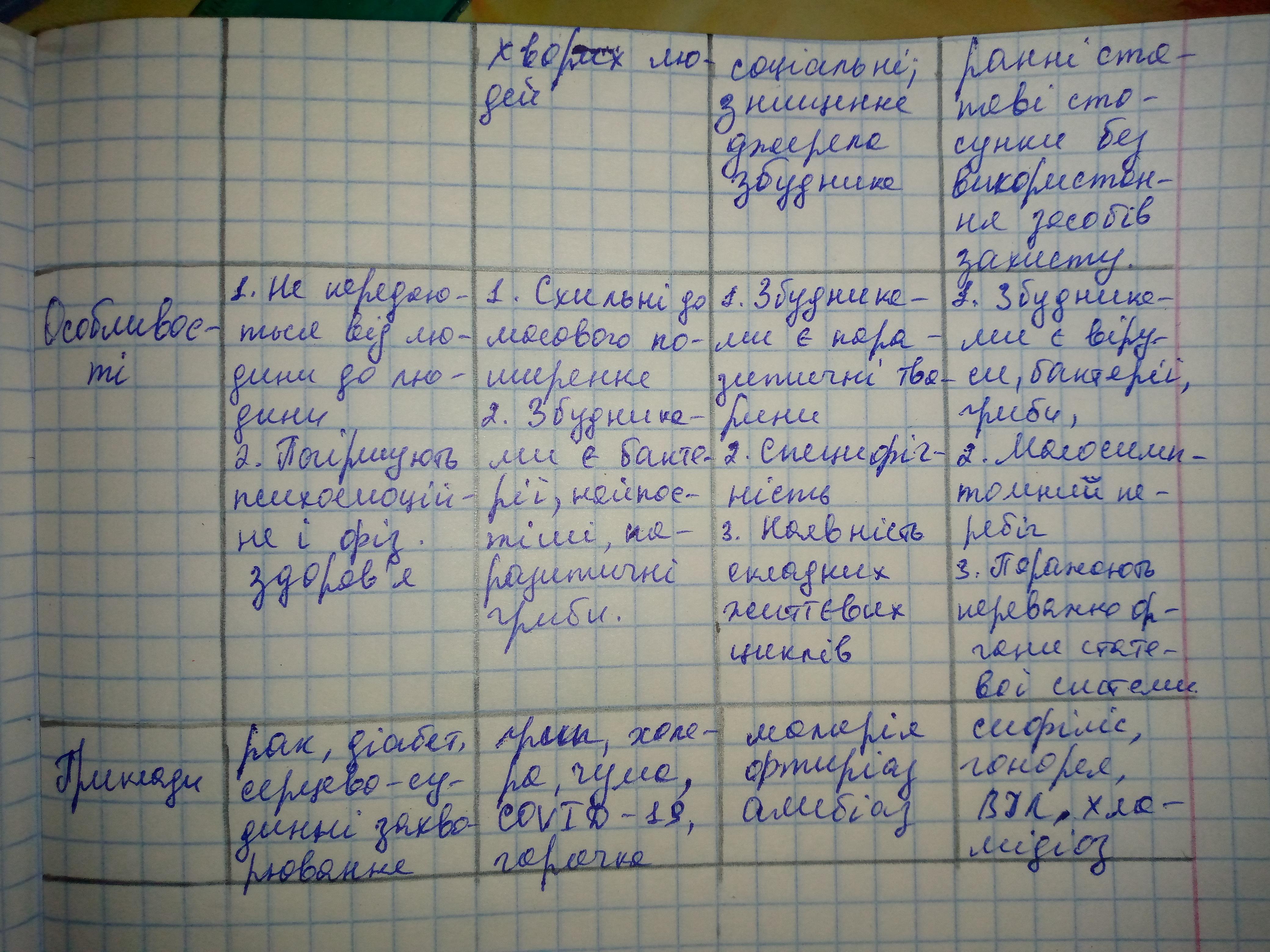 1. Застосуйте знання про групи захворювань людини і заповніть таблицю. Зробіть висновок