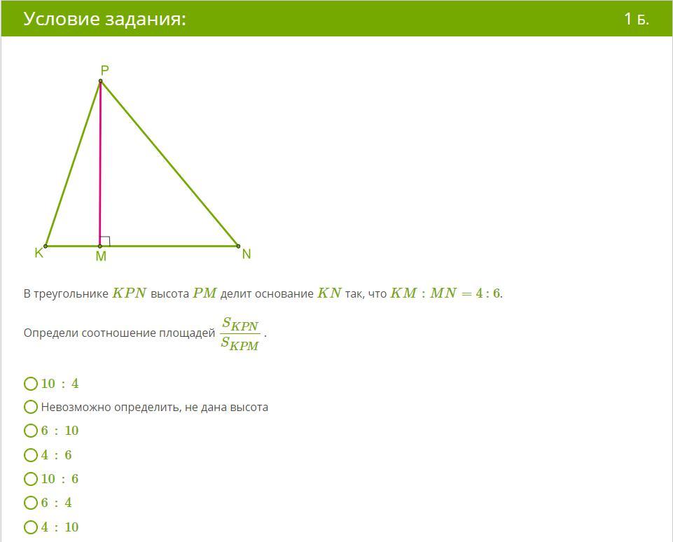 S(KPN)/S(KPM)=(0,5*10x*PM)/(0,5*4x*PM)=10/4.