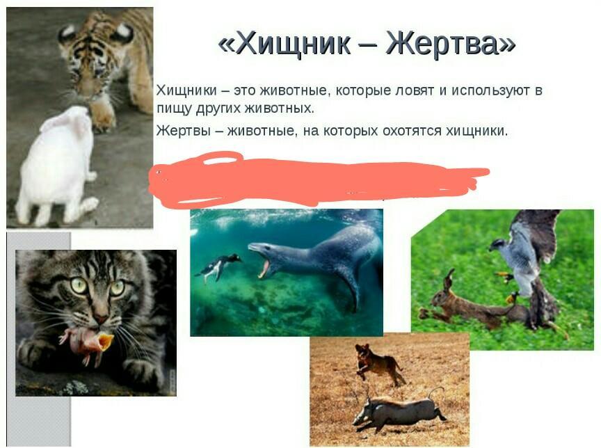 Жертвы– животные, на которых охотятся хищники. Приведите примеры животных, связанных взаимоотношением «хищник-жертва»