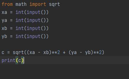 print(f'|AB| = {pow((xb- xa)**2 + (yb - ya)**2, 1/2)}')