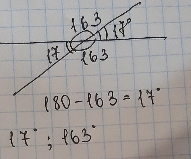 180-163=17°
