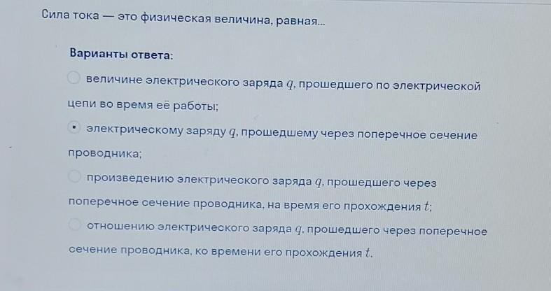 Сила тока это-величина,показывающая какой электрический заряд проходит через поперечное сечение проводника