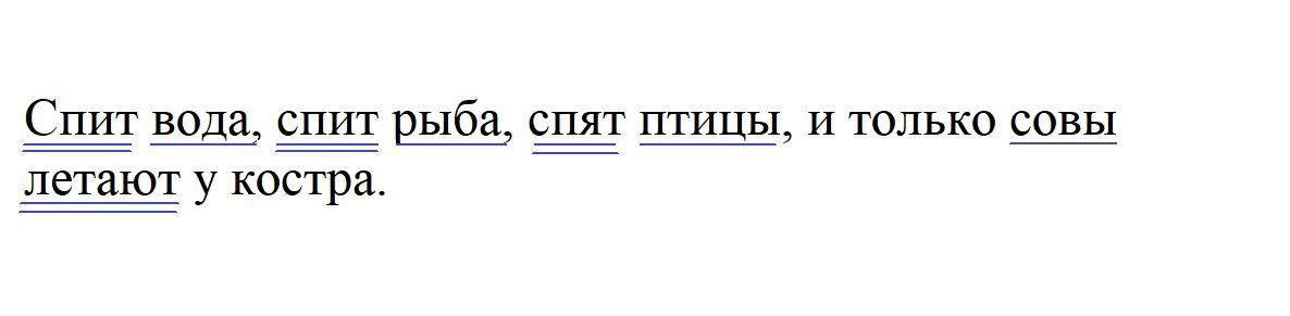 подчеркните основу предложения Спит вода, спит рыба, спят птицы, и только совы летают у костра.