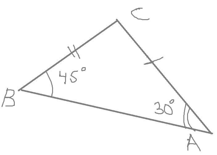 В треугольнике ABC известны углы: угол ABC равен 45 градусов, угол BAC равен 30 градусов. Сторона AC треугольника равна 4√6. Найдите BC. В ответ запишите число, деленное на √3.