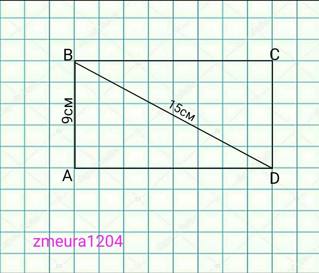 Найдите периметр прямоугольника, если его диагональ равна 15 см,а одна из сторон - 9 см