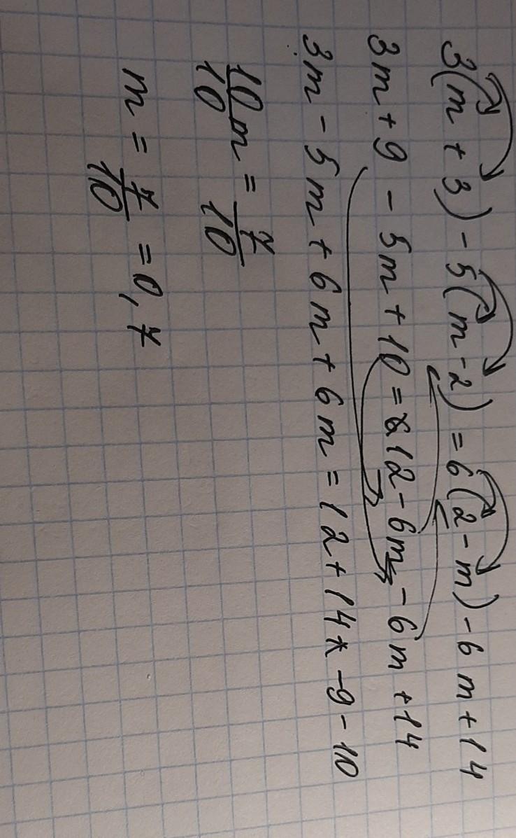 3(m+3)-5(m-2)=6(2-m)-6m+14;