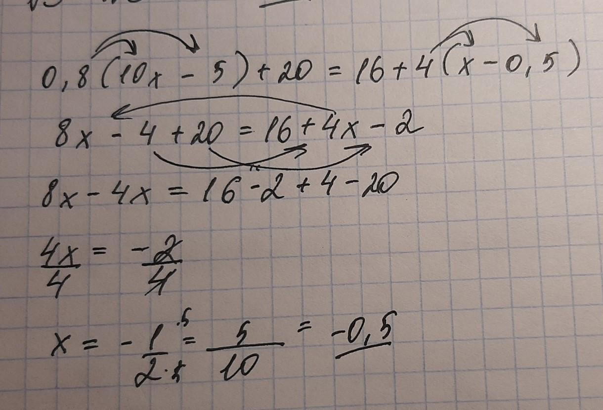0,8(10x-5)+20=16+4(x-0,5);