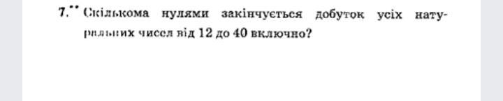 Нужно взять все натуральные числа от 12 до 40 и перемножить между собой. В результате умножения получится число, в котором будет нескольно нулей в конце. Количество нулей это ваш ответ.