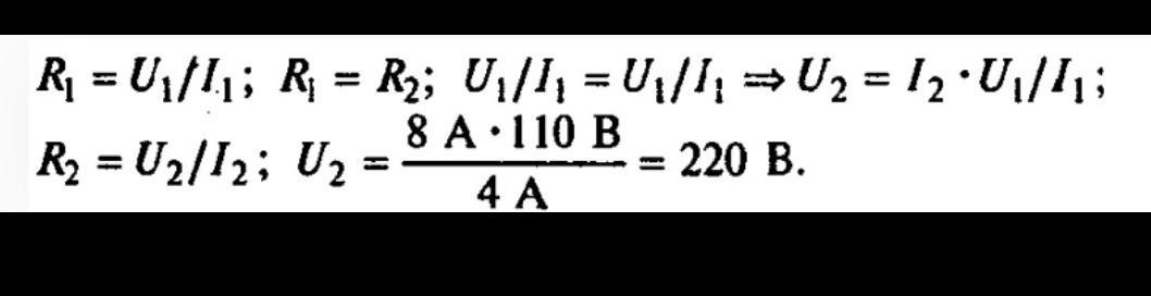 При напряжении резистора, равном 110кВ, сила тока, проходящего через него, равна 4ма. Сколько напряжения нужно на него подать, чтобы сила тока на резисторе была 8мА.
