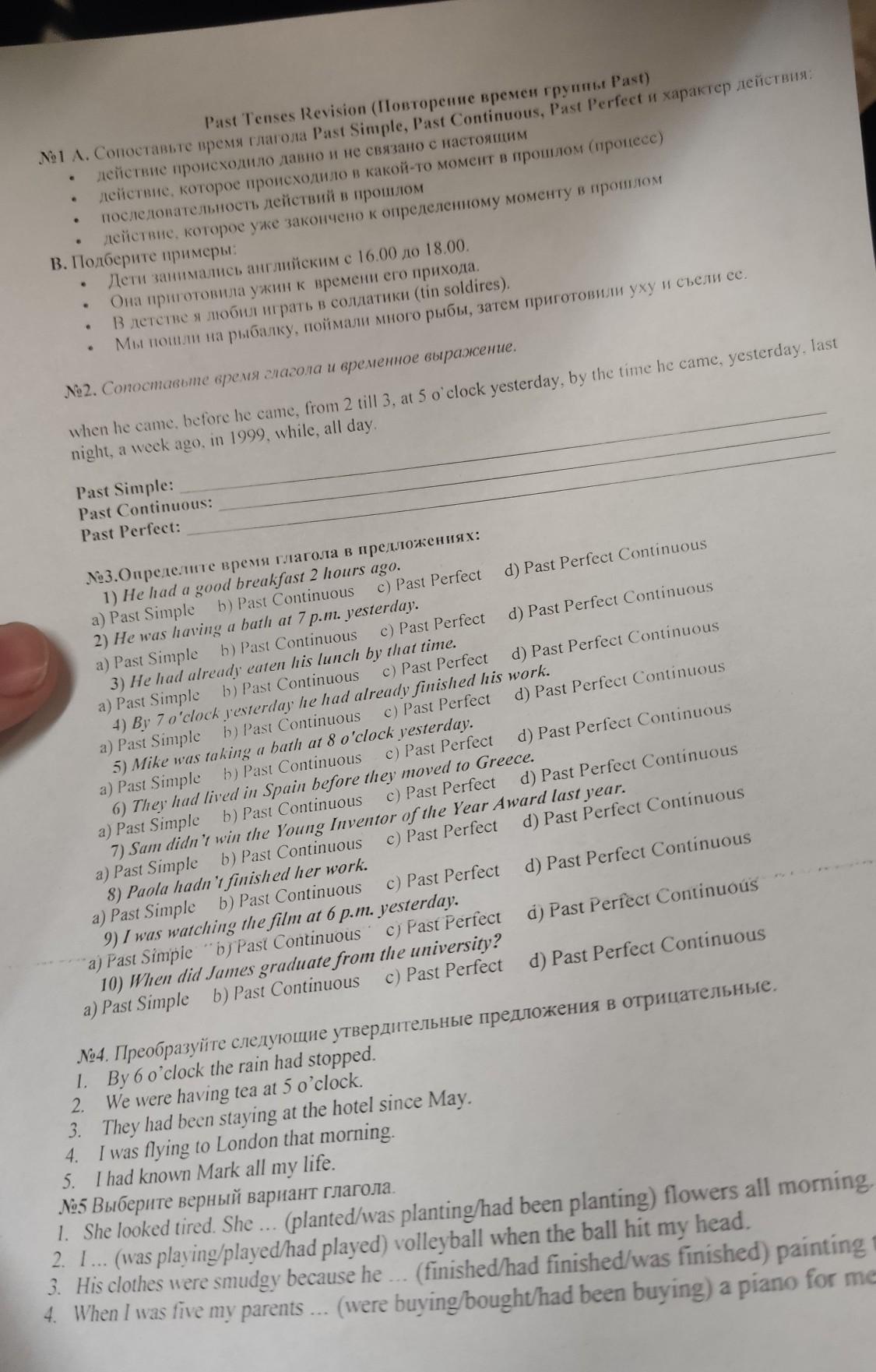 4. Past Perfect- действие которое уже закончено к определенному моменту в прошлом. - Она приготовила ужин к времени его прихода.