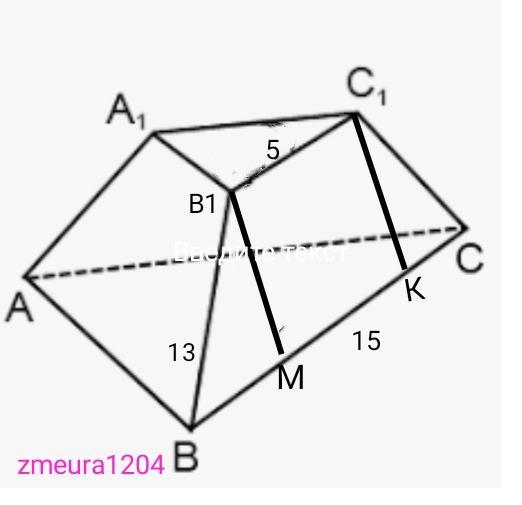 помогите пожалуйста!!! Найдите площадь полной поверхности правильной треугольной усечённой пирамиды Стороны основания которой равны 5 см и 15 см а боковые рёбра 13 см