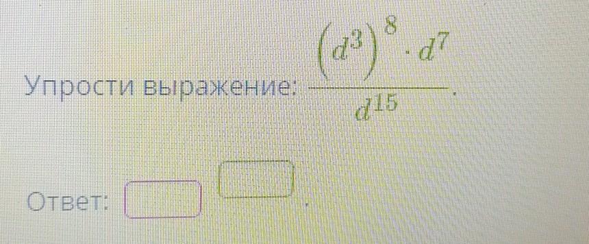 \frac{(d {}^{3}) \times d {}^{7}  }{d {}^{15} }  \\  \\  \frac{d {}^{24}  \times d {}^{7} }{d {}^{15} }  \\  \\  \frac{d {}^{31} }{d {}^{15} } \\  \\ d {}^{16}