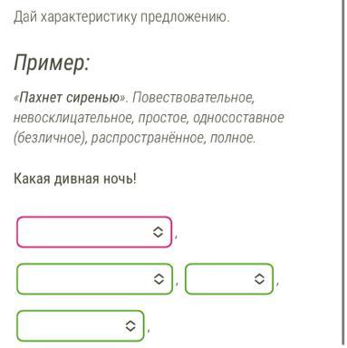 Повествовательное, воскицательное, простое, односоставное (назывное), распространенное, полное