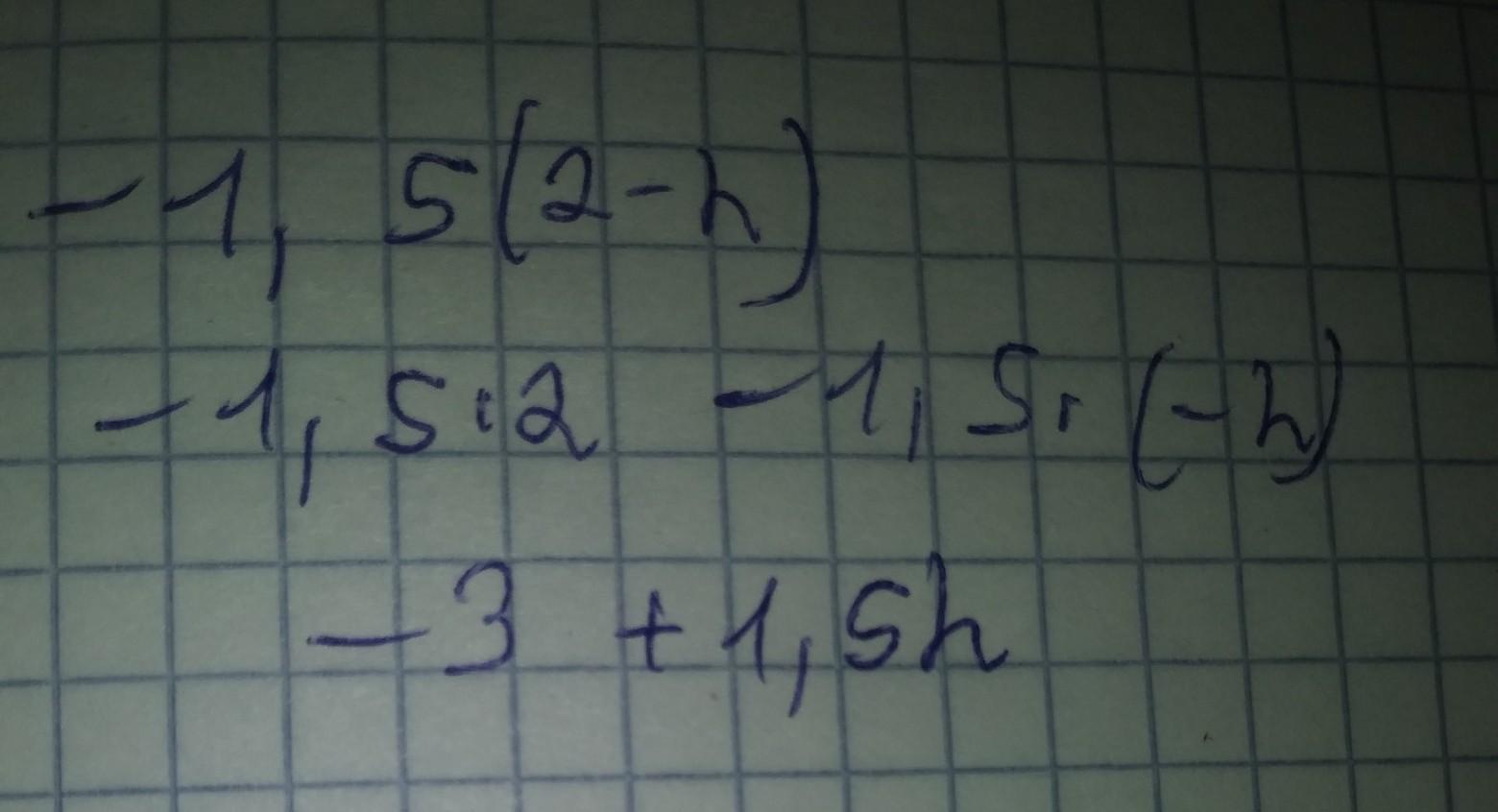 -1,5 умножаем на каждое число в скобке(2 и -n)так как мы раскрываем скобки,далее -1,5 умножаем на 2,получаем -3
