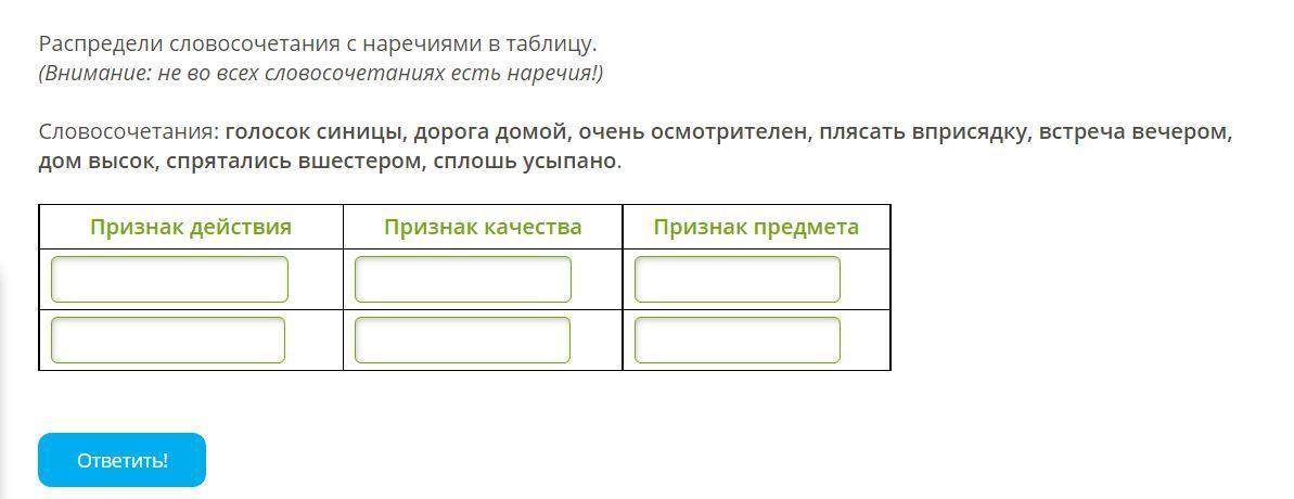 признак предмета: голосок синицы, дорога домой, встреча вечером, дом высок