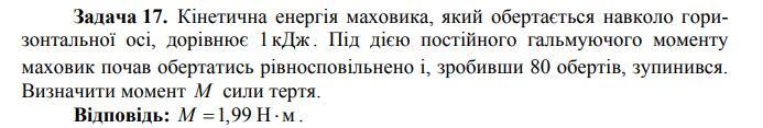 Кинетическая энергия маховика, вращающегося вокруг горизонтальной оси, равна 1 кДж. Под действием постоянного тормозящего момента маховик начал вращаться равномерно и, сделав 80 оборотов, остановился. Определить момент M силы трения.