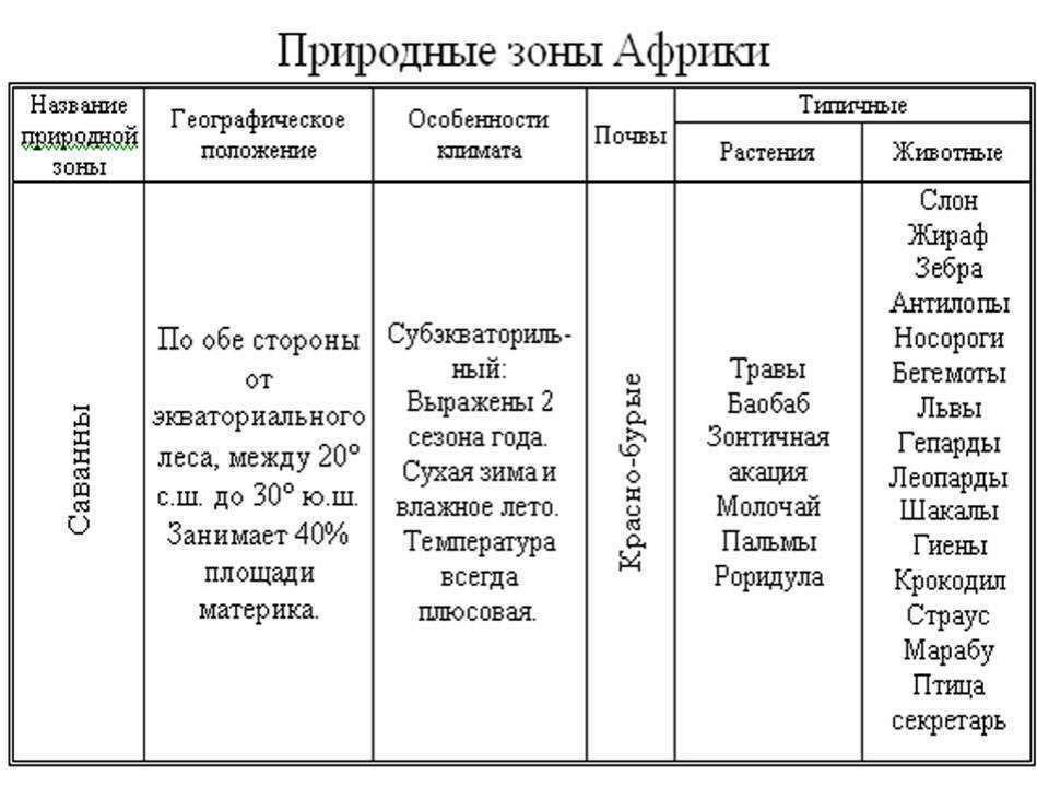 В результате, все природные зоны Африки расположились на карте с севера на юг в следующем порядке: