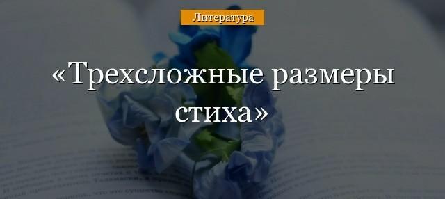 Трехсложный стихотворный размер – это стихотворный размер, стопа которого состоит из одного ударного слога и двух безударных слогов.Трехсложные размеры более гибки и близки к разговорной речи, чем двухсложные.
