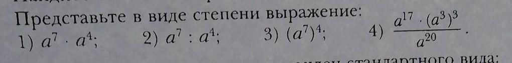 4)a¹⁷×(a³)³/a²⁰=a¹⁷×a⁹:a²⁰=a²⁶:a²⁰=a⁶