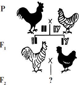 2. Рассмотрите схемы скрещиваний, представленных на рисунке, и определите вероятность (в %) появления в F2 чёрных петушков. Ответ запишите в виде числа.