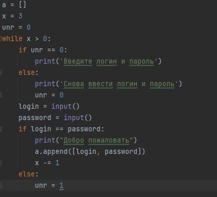 print('Снова ввести логин и пароль')