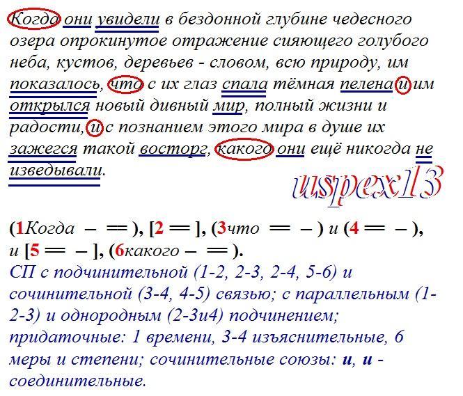 Когда они увидели в бездонноц глубине чедесного озёр опрокинутое отражение сияющего голубого неба, кустов, деревьев-словом, всю природу, им показалось, что с их глаз спала тёмная перена и им открылся новый дивный мир, полный жизни и радости, и с познание этого мира в душе их зажегся такой восторг какого они ещё никогда не изведывали.