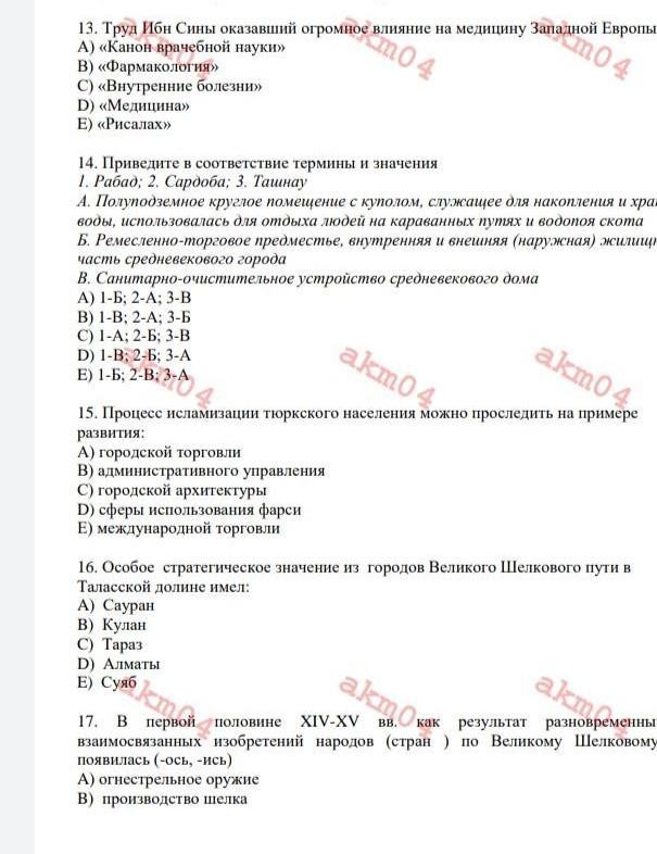 13-А; 14-А (2-а 1-б 3-в) 15-Е, А,D,16- C; 17-В