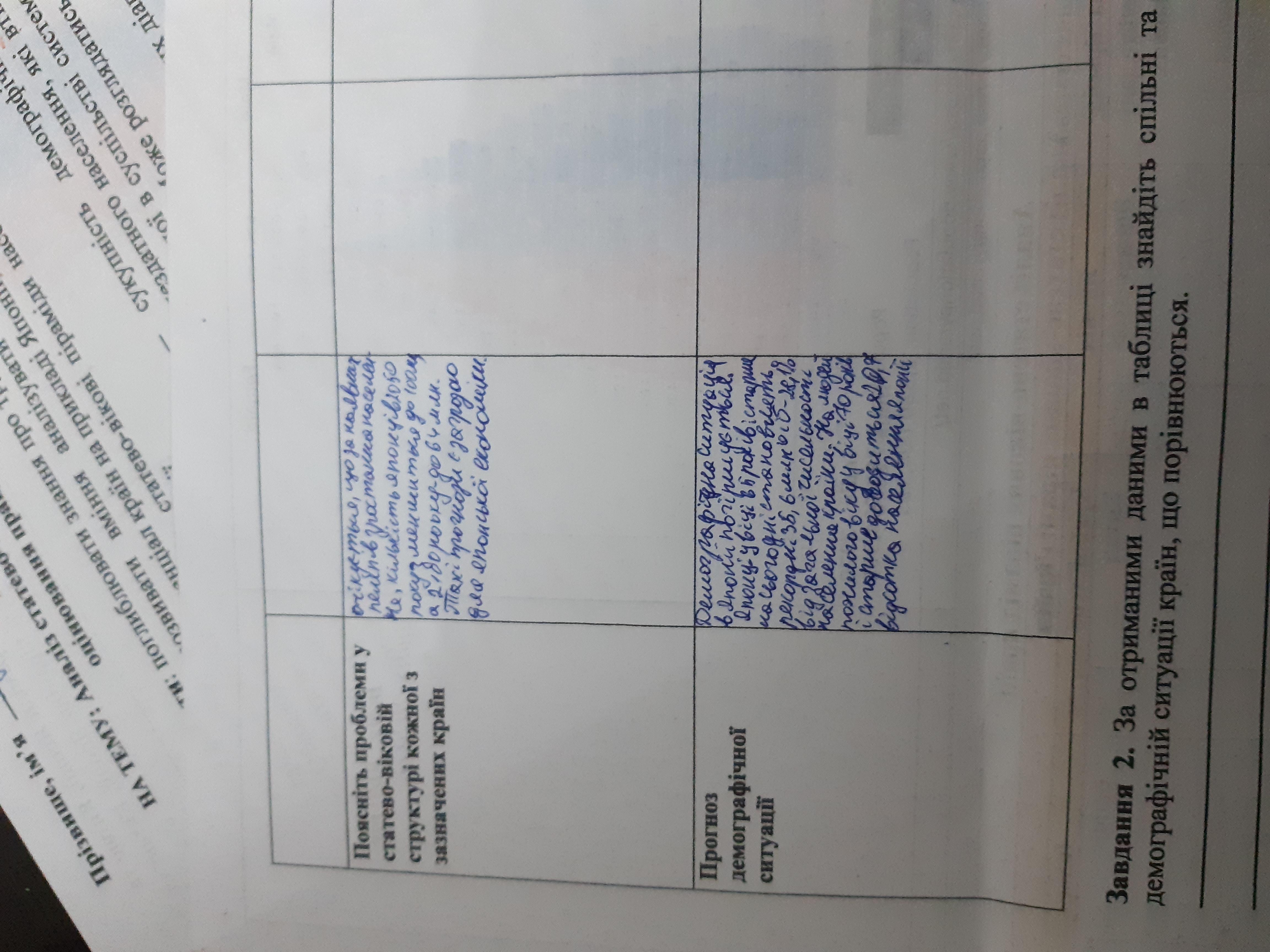 4) за отриманими даними в таблиці знайдіть спільні відмінні риси в демографічній ситуації країн, що порівнюються