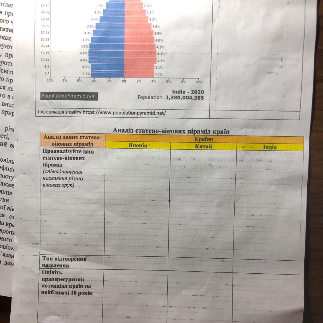 2) поясніть проблеми у статево-віковій структурі кожної з зазначених країн