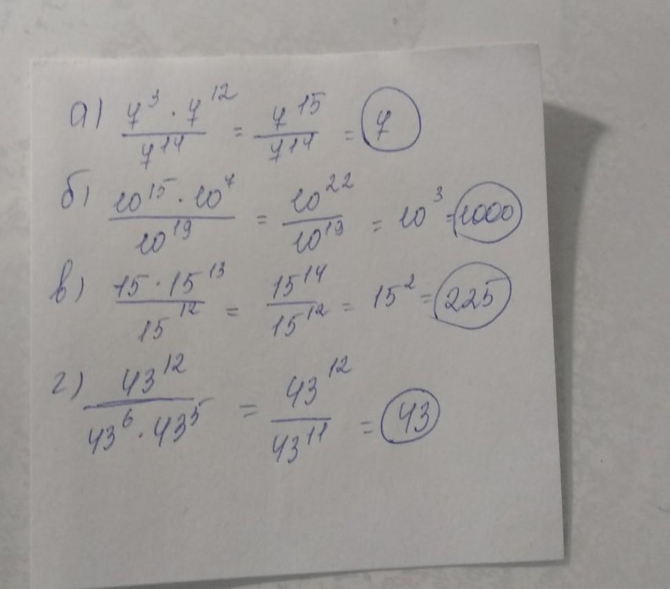 г)43^12/43^5×43^6=43^12/43^11=43^1