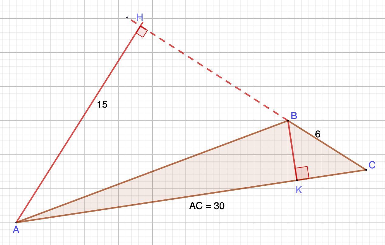 У треугольника со сторонами 6 и 30 проведены высоты к этим сторонам. Высота, проведённая к первой стороне, равна 15. Чему равна высота, проведённая ко второй стороне?