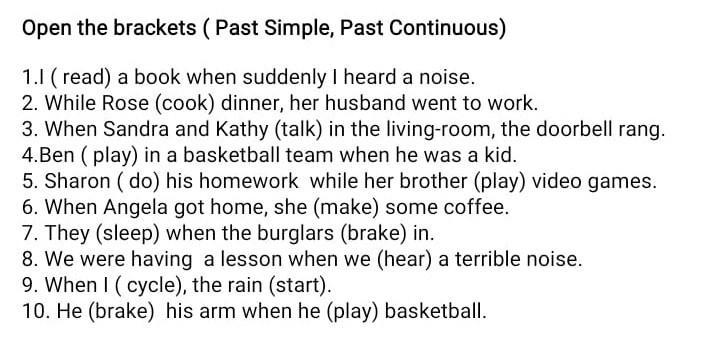 Помогите, пожалуйста! Раскройте скобки, употребив глаголы в Past Simple или Past Continuous.