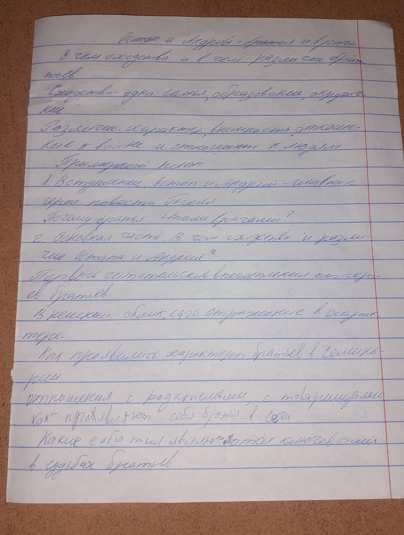 Сочинение по произведению Гоголя "Тарас Бульба. На тему: "Остап и Андрий-братья и враги". по плану (на фотографиях план). Срочно,не из интернета