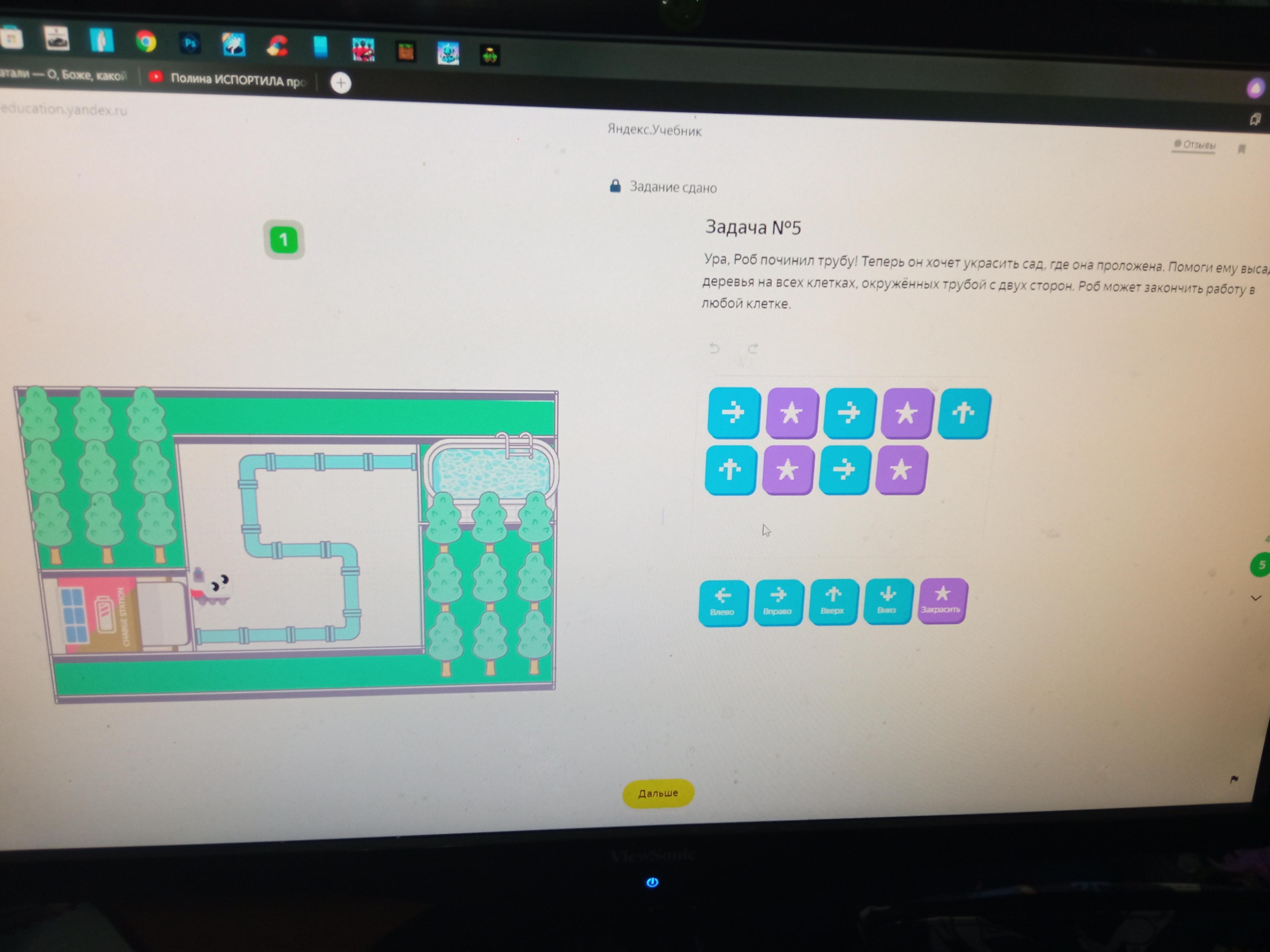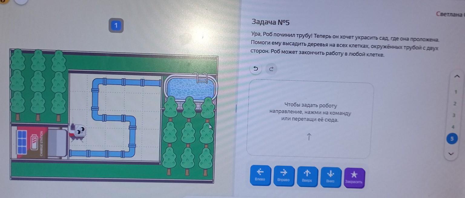 Ура, Роб починил трубу! Теперь он хочет украсить сад, где она проложена Помоги ему высадить деревья на всех клетках, окружённых трубой с двух сторон. Роб может закончить работу в любой клетке. помогите пожалуйста!!!! Даю 15 балов