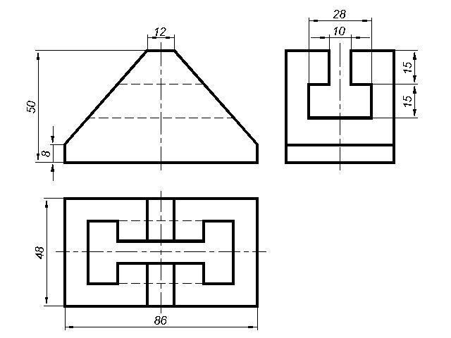 Постройте чертёж детали (3 вида) по её наглядному изображению,нанесите размеры.Помогите пожалуйста!!!