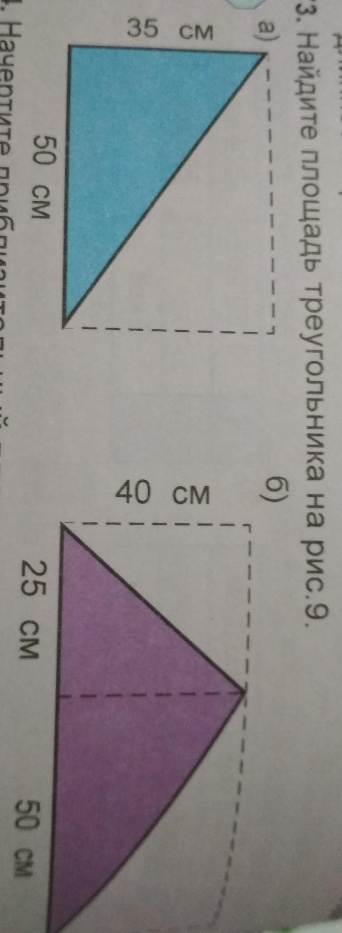 673. Найдите площадь треугольника на рис. 9. 6) Г 677 9 2 35 см 40 см 1 І 50 см 25 см 674. Начертите приблизительный план паш 50 см