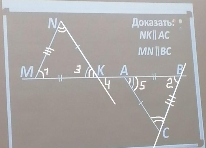 ∠3=∠5 (лежат против равных сторон), значит ∠4=∠5 (соответственные) ⇒ NK ║ AC