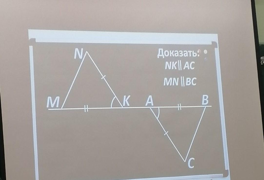 От сюда следует, что ΔMNK = ΔBCA по двум сторонам и углу между ними ( 1 признак равенства треугольников )
