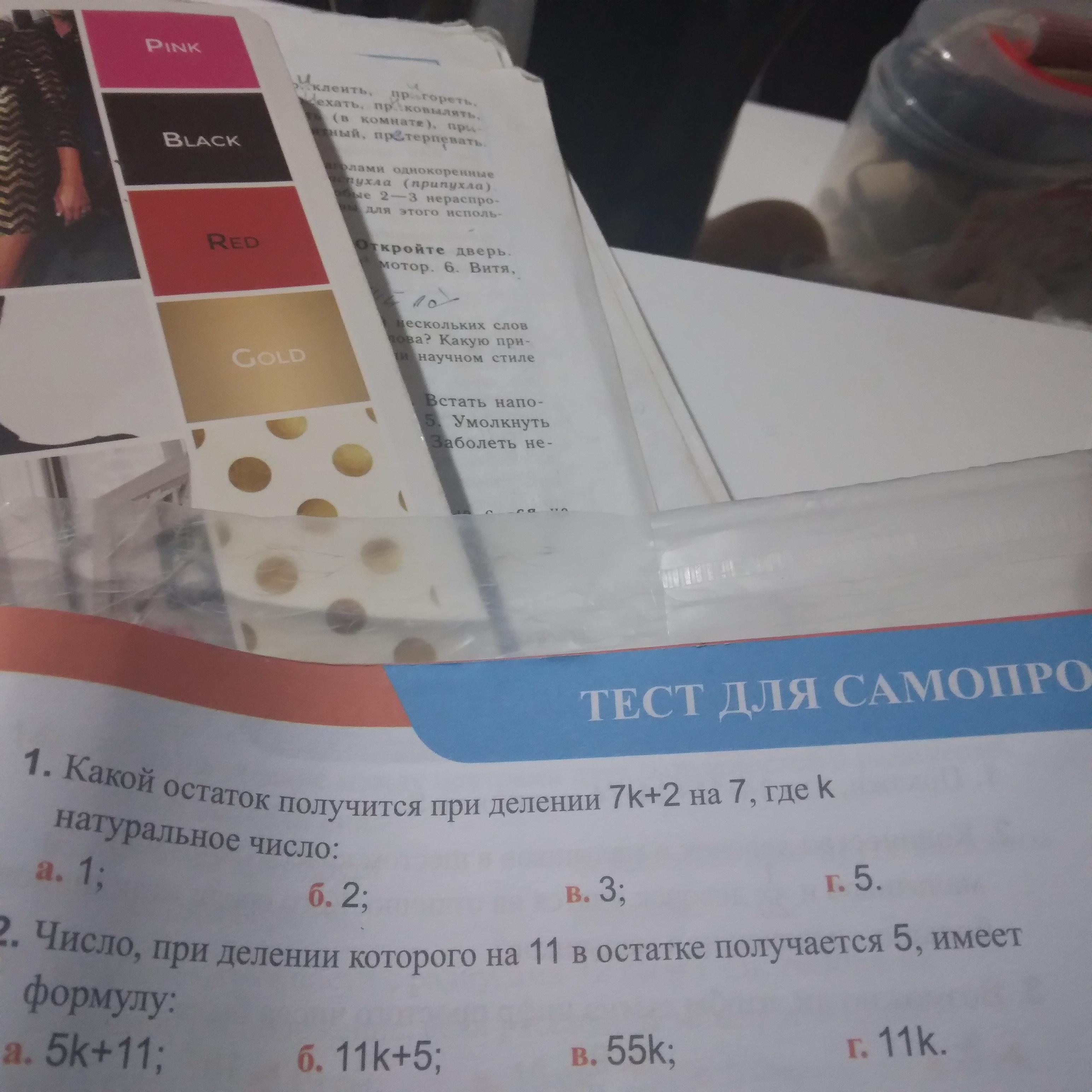 если вместо k подставить какое то натуральное число то это будет делиться без остатка, а если ещё прибавить 2,то 2 будет остатком.