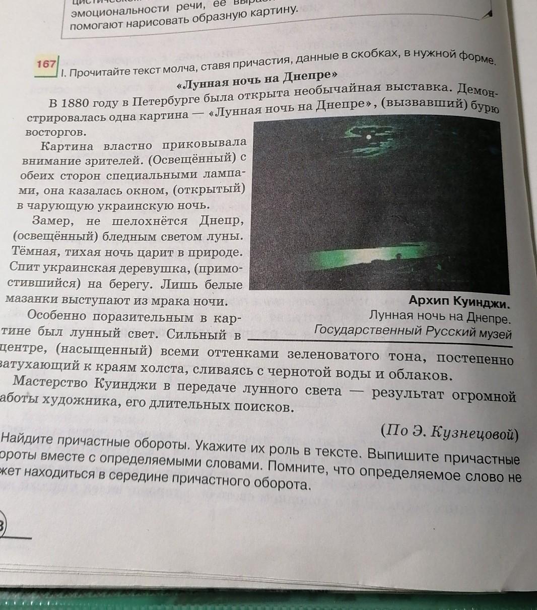 167 1. Прочитайте текст молча, ставя причастия, данные в скобках, в нужной форме. «Лунная ночь на Днепре» П - On Подгот,