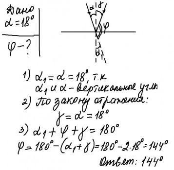 1.Луч света падает на пластинку под углом 18 0 к перпендикуляру. Найти в градусах угол между мысленным продолжением падающего луча и отраженным лучом.