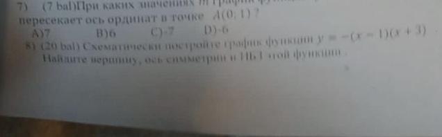 ДАЮ 50 балов.схематически постройте график функции y=-(x-1)(x+3).Найдите вершину,ось симетрии и Нбз функции (задание 8)