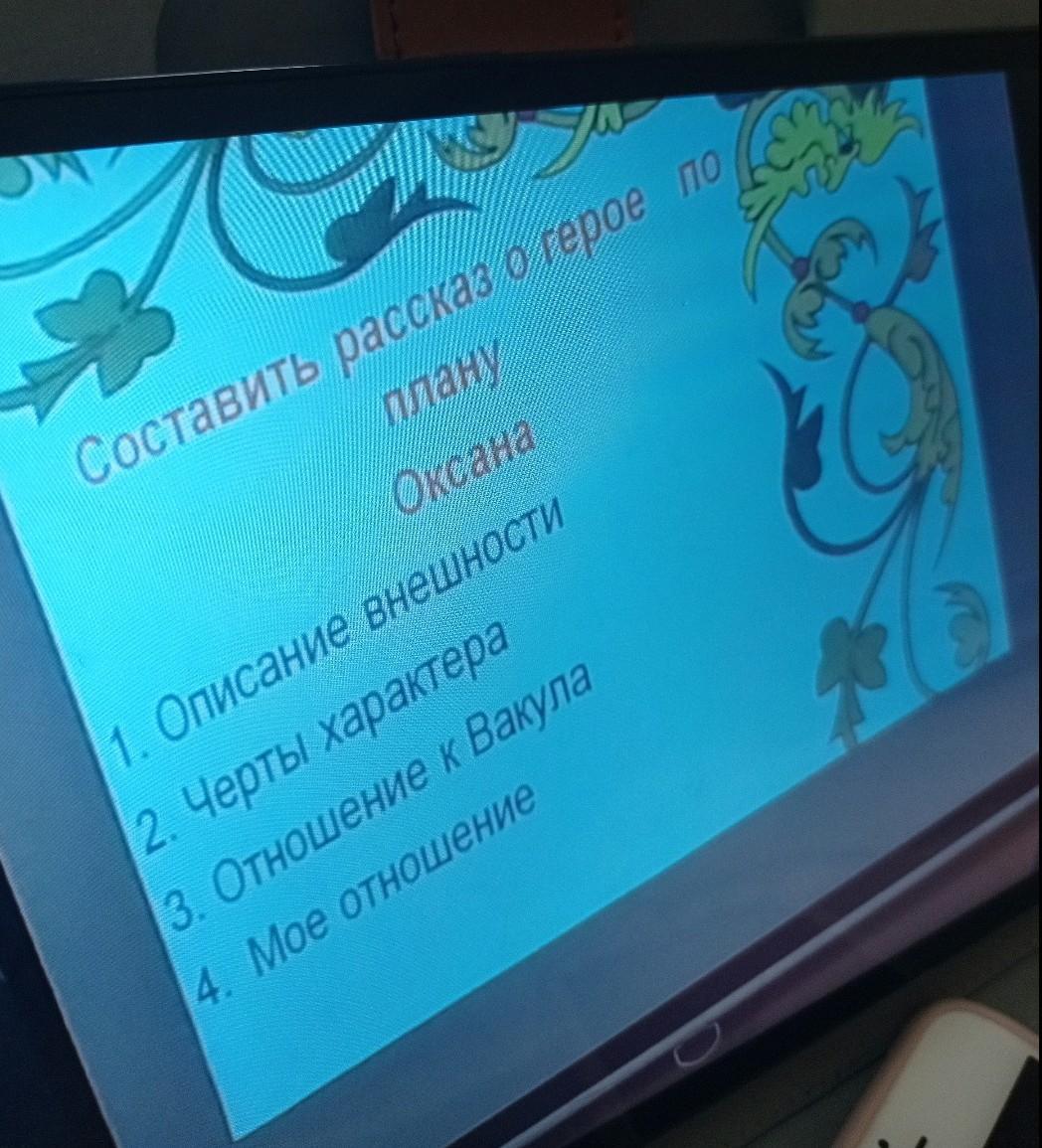 Оксана - дочь богатого казака Чуба. Любила рассматривать себя в зеркало и видеть: курносый нос, черные глаза, красивые брови и тугую косу. Ведёт себя капризно и эгоистично, иногда насмешливо. Привыкла больше получать, нежели отдавать. Крайне самолюбива, высокомерна и горда. Любит, чтобы за ней бегали и восхищались. Поначалу к Вакуле относится холодно, насмешливо и с иронией, но позже меняет свое мнение о нём и влюбляется.