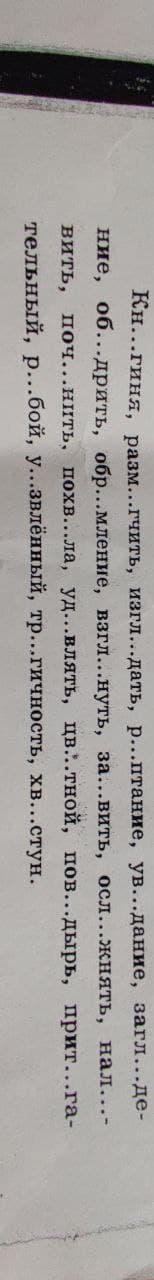 Княгиня-князь, размягчить-мягкий, изглодать-голод, роптание-ропот, увядание-вянуть, заглядение-взгляд, ободрить-бодрость, обрамление-рама, взглянуть-взгляд, заявить-заявка, осложнять-сложный, наловить-ловит, починить-починка, похвала-хвалит, удивлять-диво, цветной-цвет, поводырь-водит, притягательный-тянет, рябой-рябь, уязвлённый-язва, трагичность-трагик, хвастун-хвастаться.