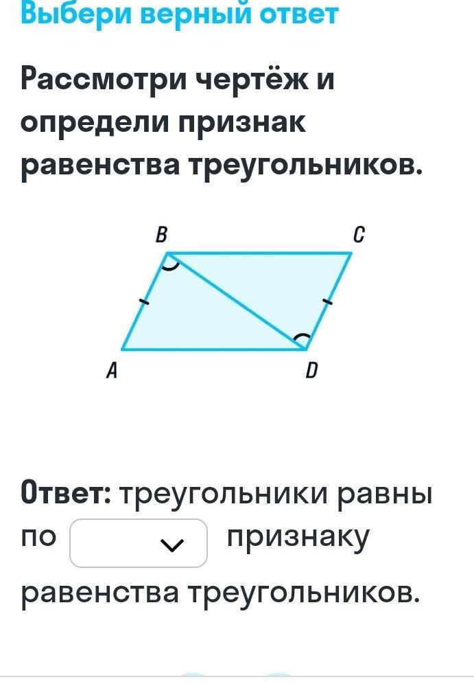 Доказательство: 1) BD - общая сторона, 2) АВ = СD, 3) угол В=углу D => ∆АВD = ∆BDC(по двум сторонам и углу между ними)