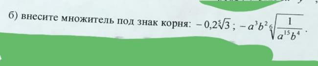 -а³b²(1/(a¹⁵b⁴)¹/⁶=-((а¹⁸b¹²/(a¹⁵b⁴))¹/⁶=-(а³b⁸)¹/⁶